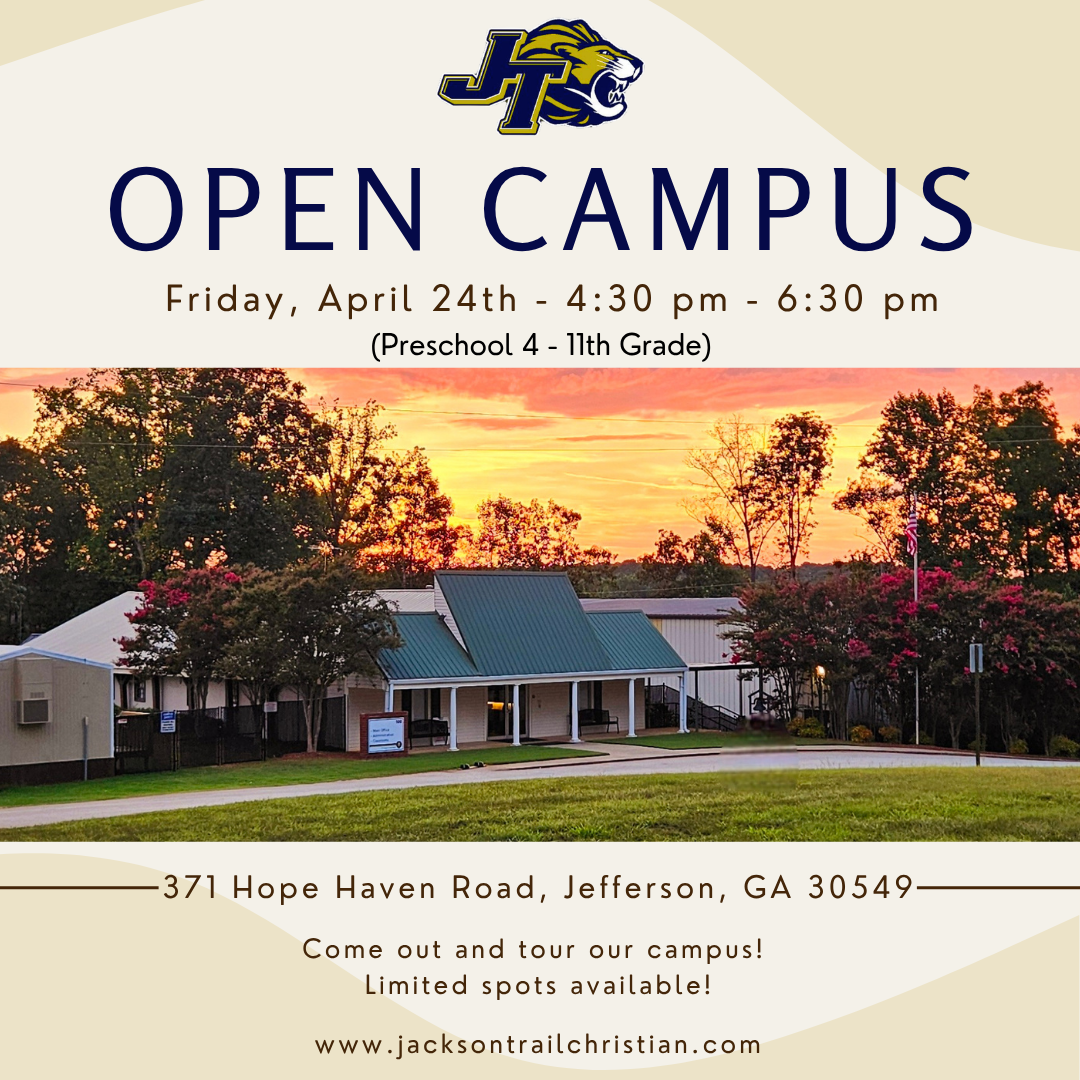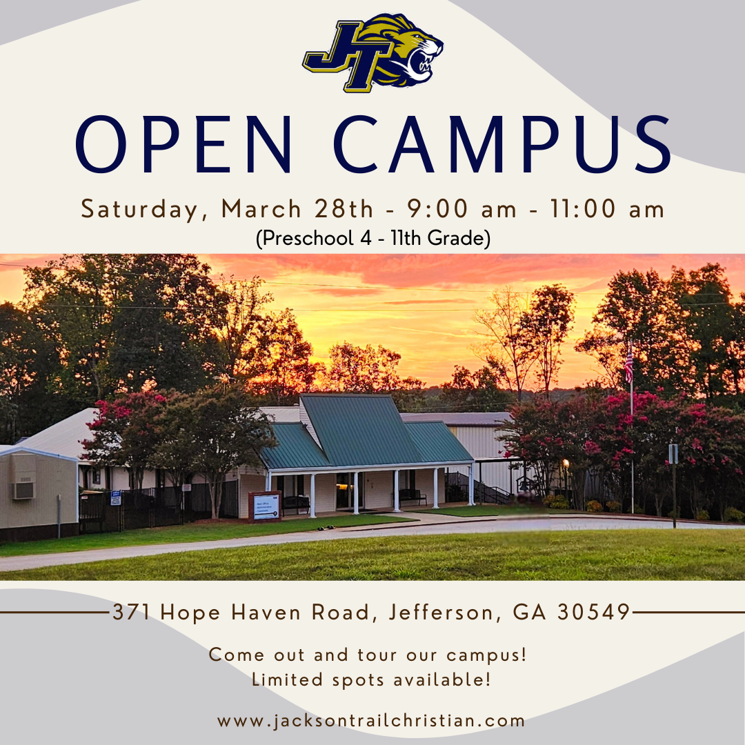 We would love you to join our JTCS family! Check out our set tour dates! We are currently NOT scheduling individual tours. We hope you can join us! Questions? Please call the school, 706-367-9418.